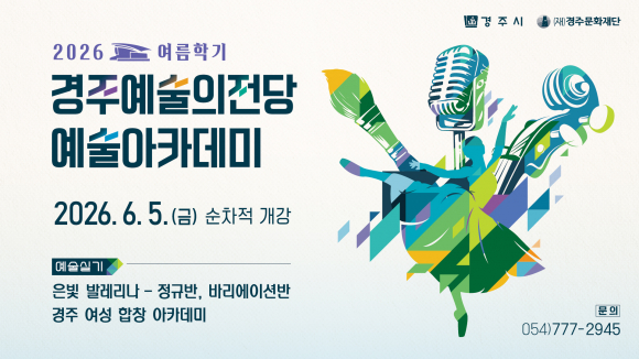 |  | | | ⓒ CBN뉴스 - 경주 | | [cbn뉴스=이재영 기자] (재)경주문화재단은 5월 4일, '2026 경주예술의전당 예술아카데미' 여름학기 수강생을 모집한다. 경주예술의전당 예술아카데미는 시민들이 예술을 보다 친근하게 경험하고, 일상 속에서 자연스럽게 예술을 향유할 수 있도록 돕는 교육 프로그램으로 꾸준한 관심 속에 이어지고 있다.